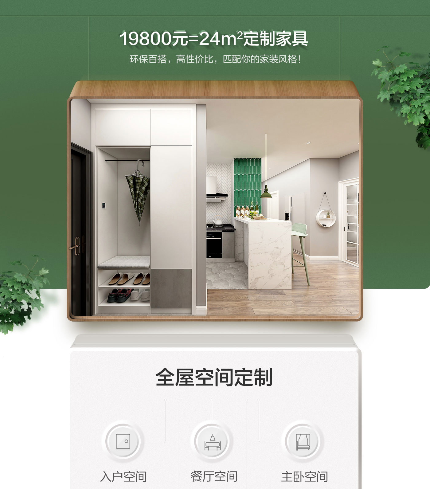 無醛添加,綠色生態(tài)板,環(huán)保新升級,19800元定制24平米全屋空間!