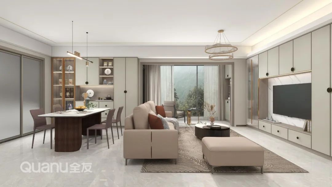 ? 設(shè)計(jì)師選擇“金璽+”系列為岑先生設(shè)計(jì)新家,先以淺灰細(xì)木紋搭配絨灰色鋪墊全屋,讓清雅的東方古韻洋溢此間,又將傳統(tǒng)文化積淀與現(xiàn)代藝術(shù)手法相結(jié)合,為岑先生一家打造出一個(gè)亦古亦今的生活空間。
