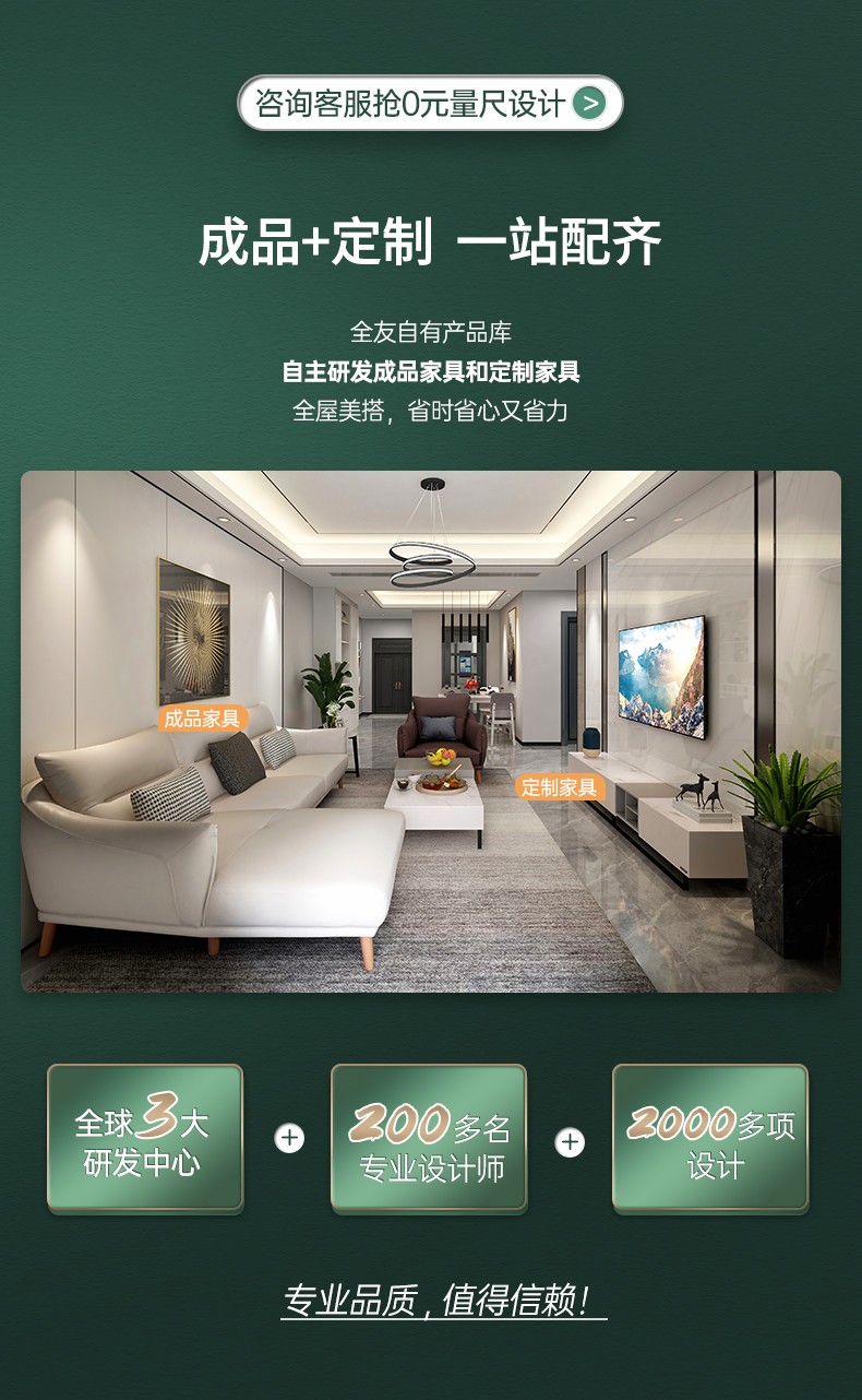 全友全屋套裝【成品+定制】拎包入住,電視背景墻、酒柜、展示柜、床等,49800元全屋套餐,具體金額以設(shè)計(jì)方案為準(zhǔn),歡迎店內(nèi)詳詢(xún)。