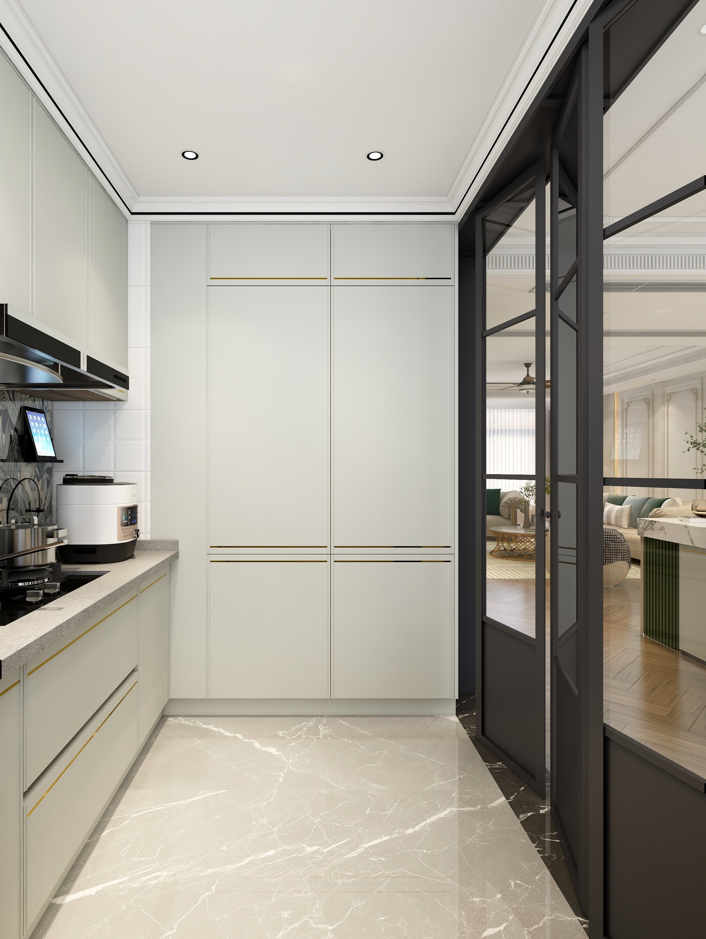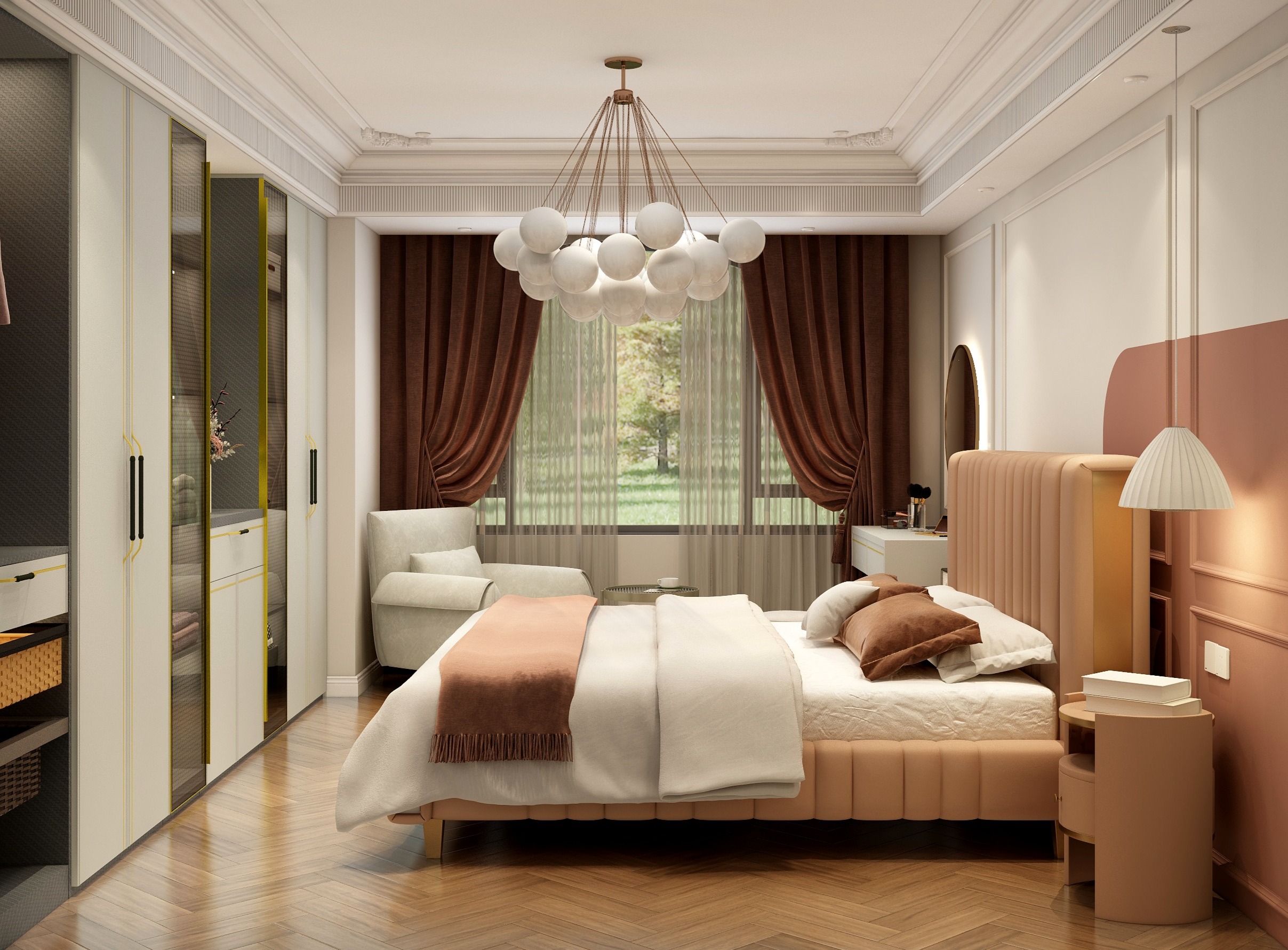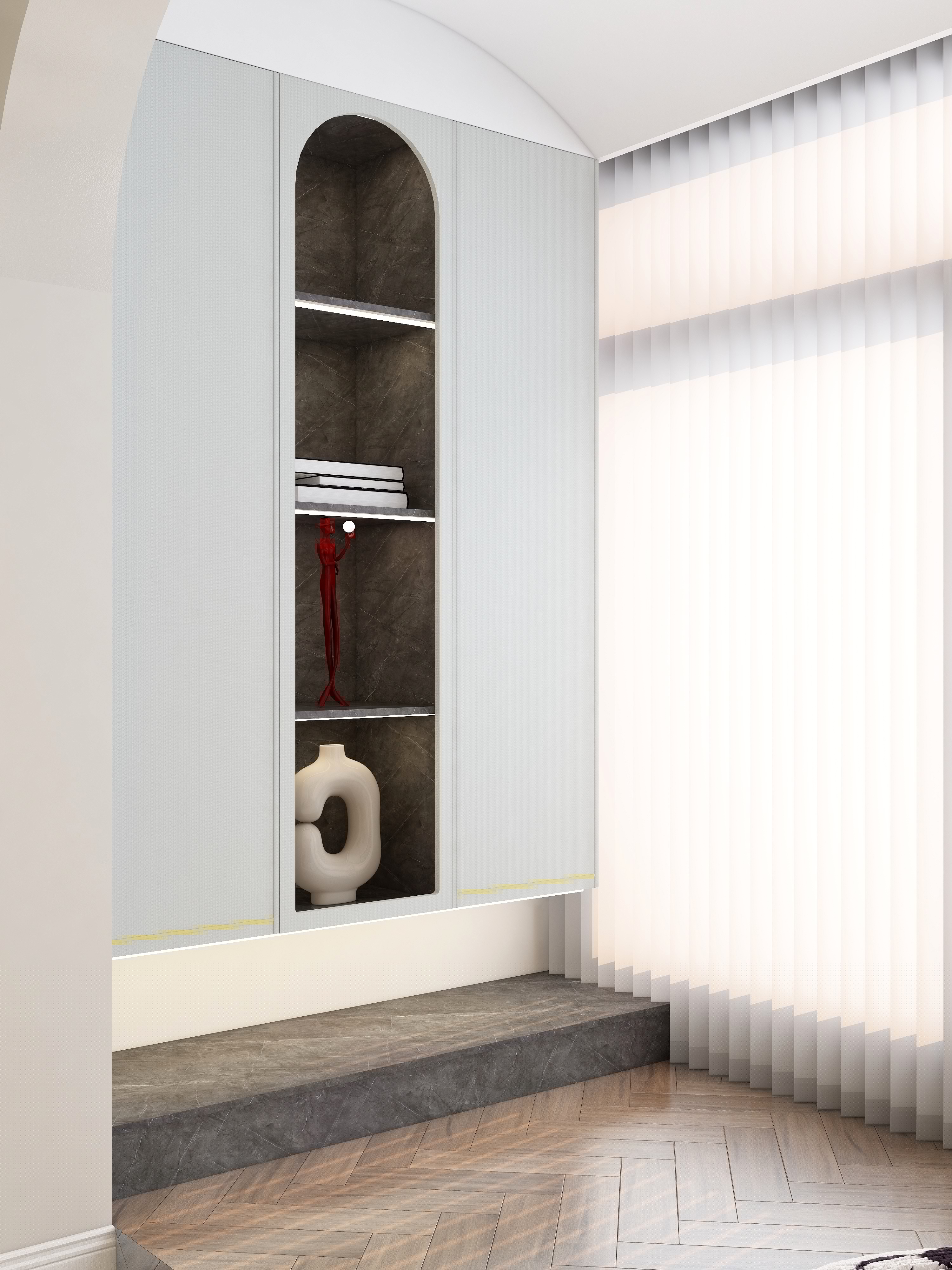 整體方案圍繞”個性“”復(fù)古“”生活化“三個關(guān)鍵詞進行設(shè)計,通過圓弧線條,加???然元素,將?然融??活,打造浪漫復(fù)古風(fēng)情。將整個空間合理利用,陽臺改成地臺,視角上擴大空間感,采用拱形門口隔斷,柔化空間線條,屋主的品味盡顯無疑。