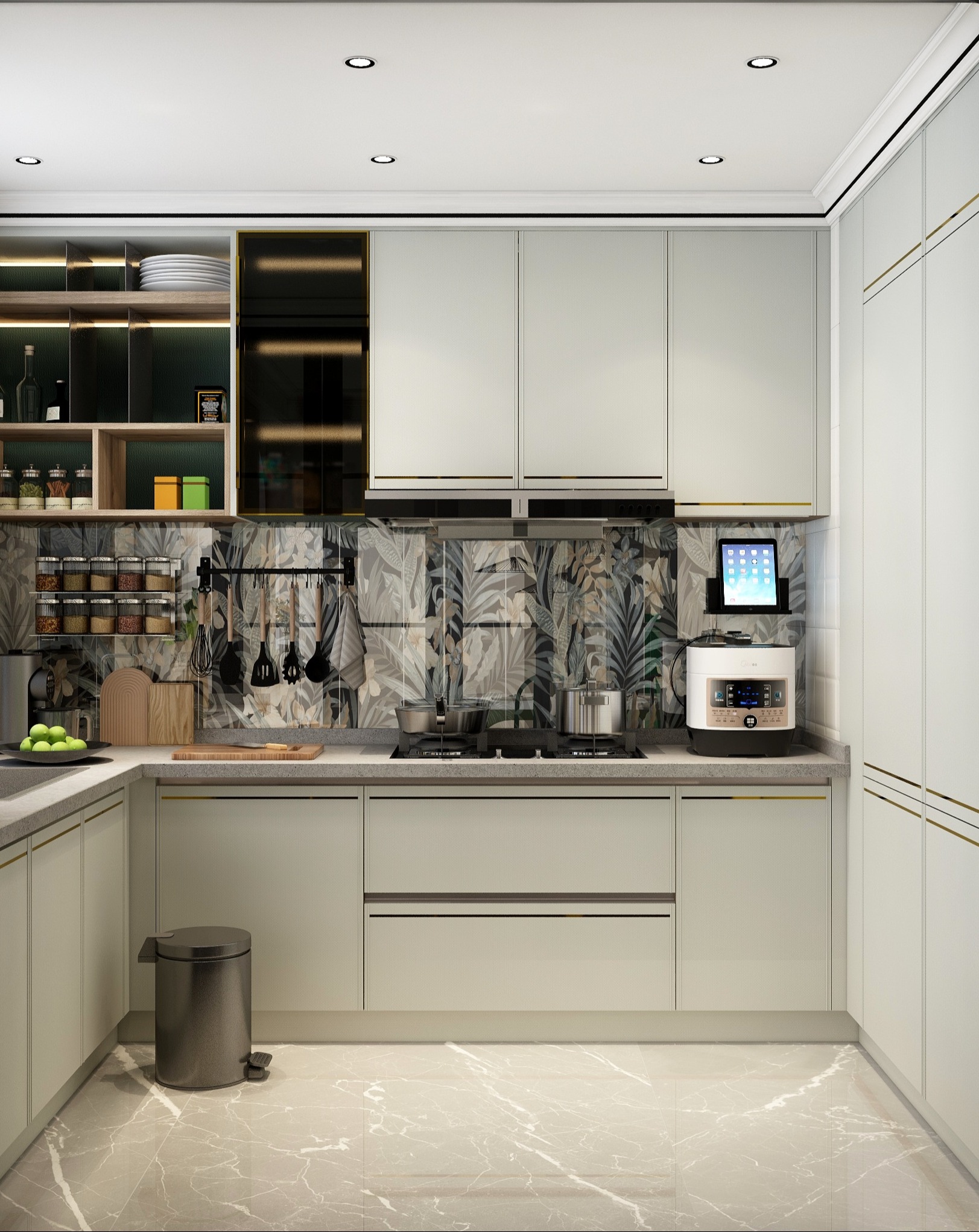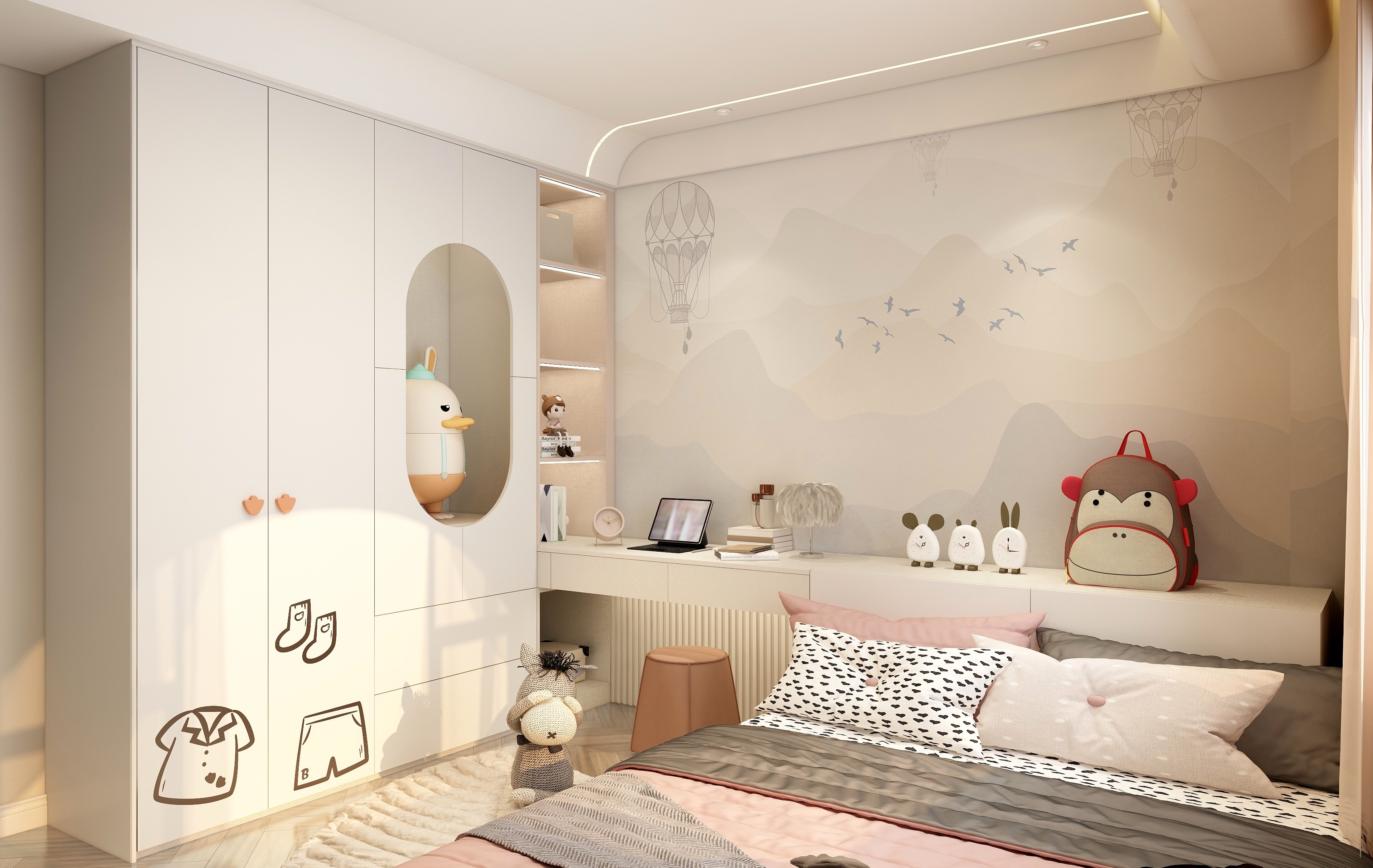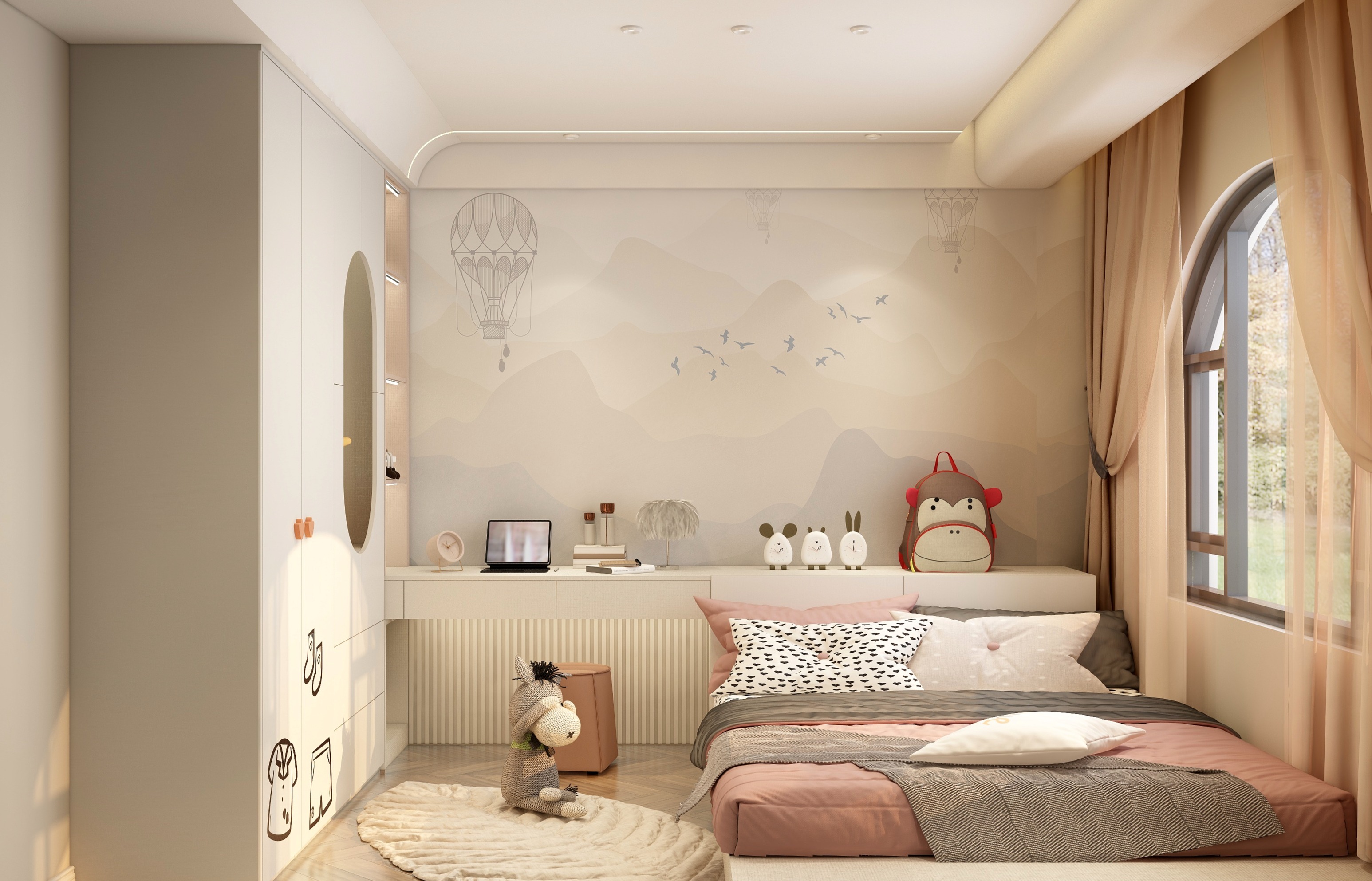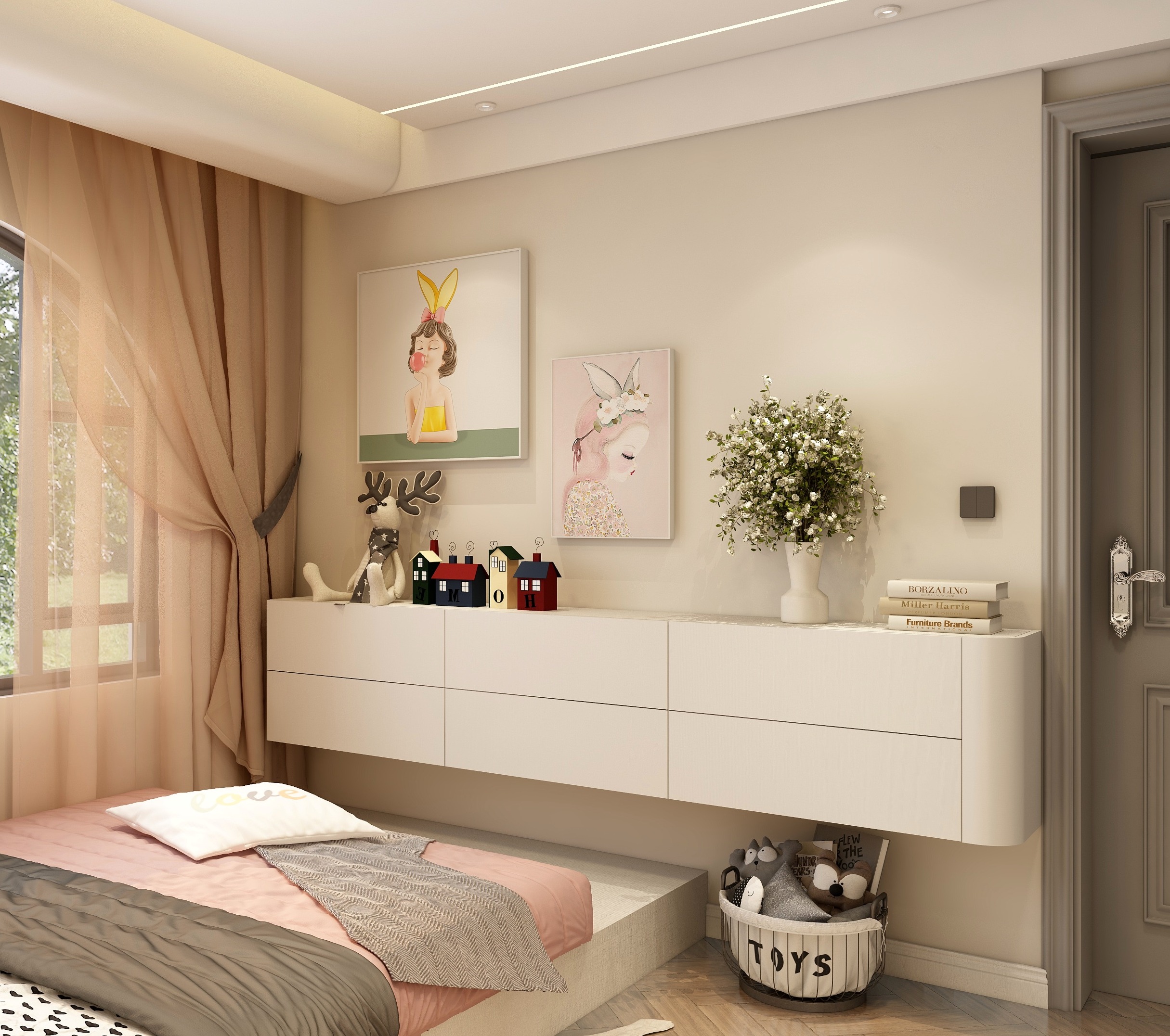 整體方案圍繞”個性“”復(fù)古“”生活化“三個關(guān)鍵詞進行設(shè)計,通過圓弧線條,加???然元素,將?然融??活,打造浪漫復(fù)古風(fēng)情。將整個空間合理利用,陽臺改成地臺,視角上擴大空間感,采用拱形門口隔斷,柔化空間線條,屋主的品味盡顯無疑。