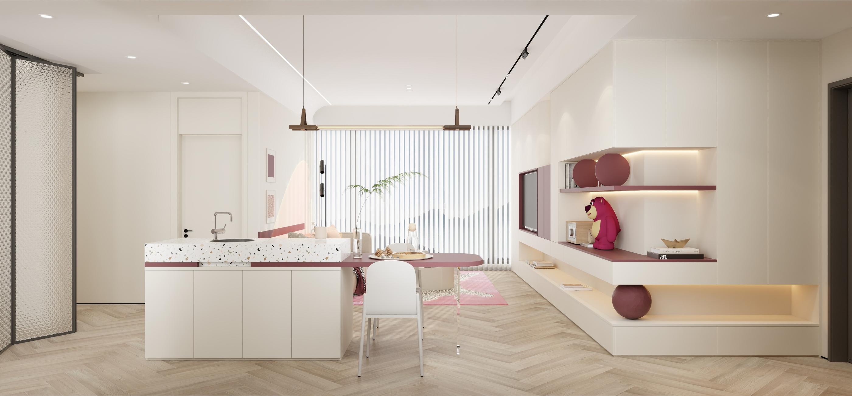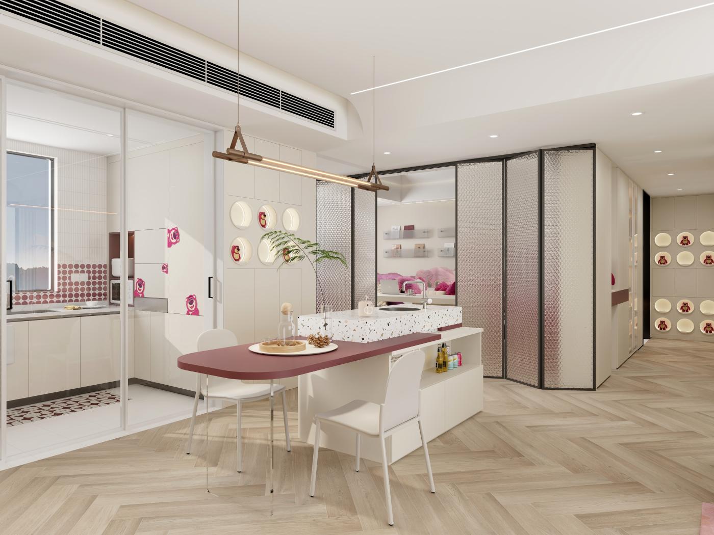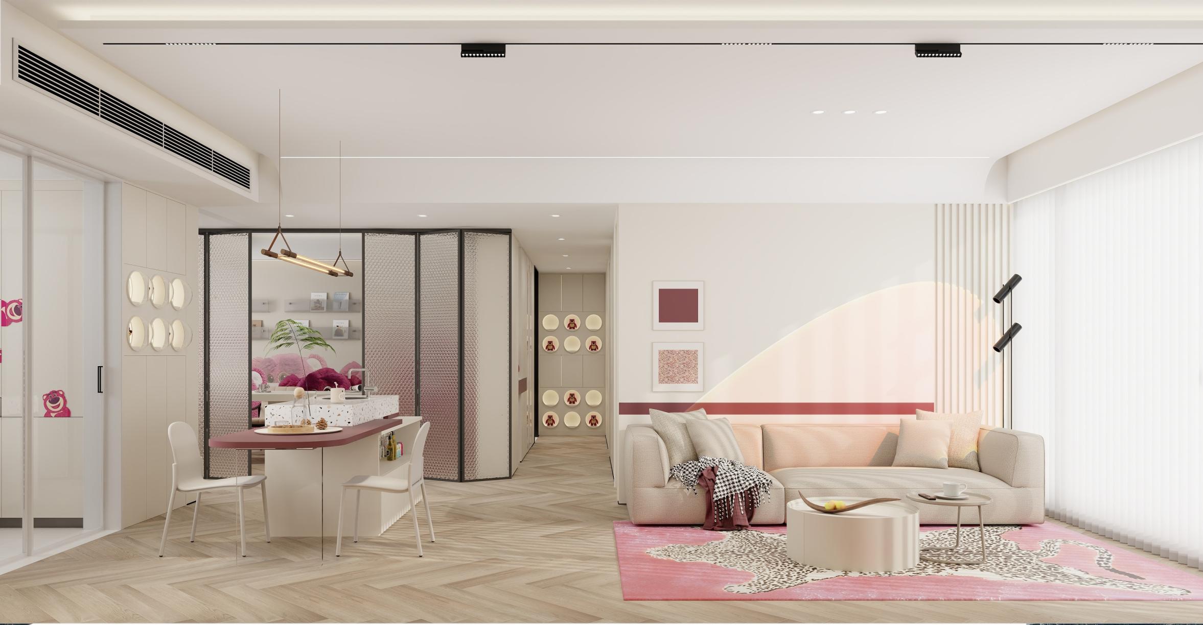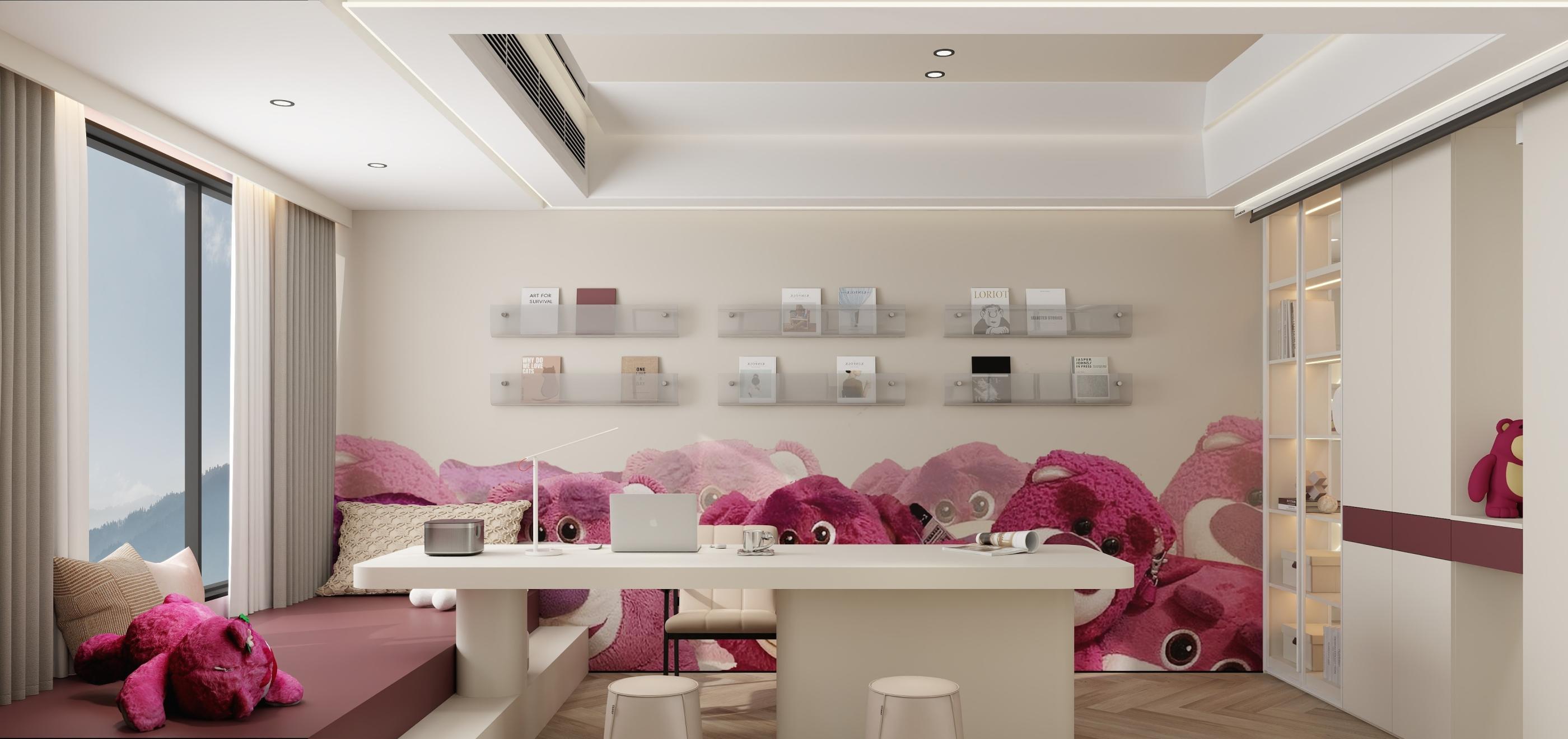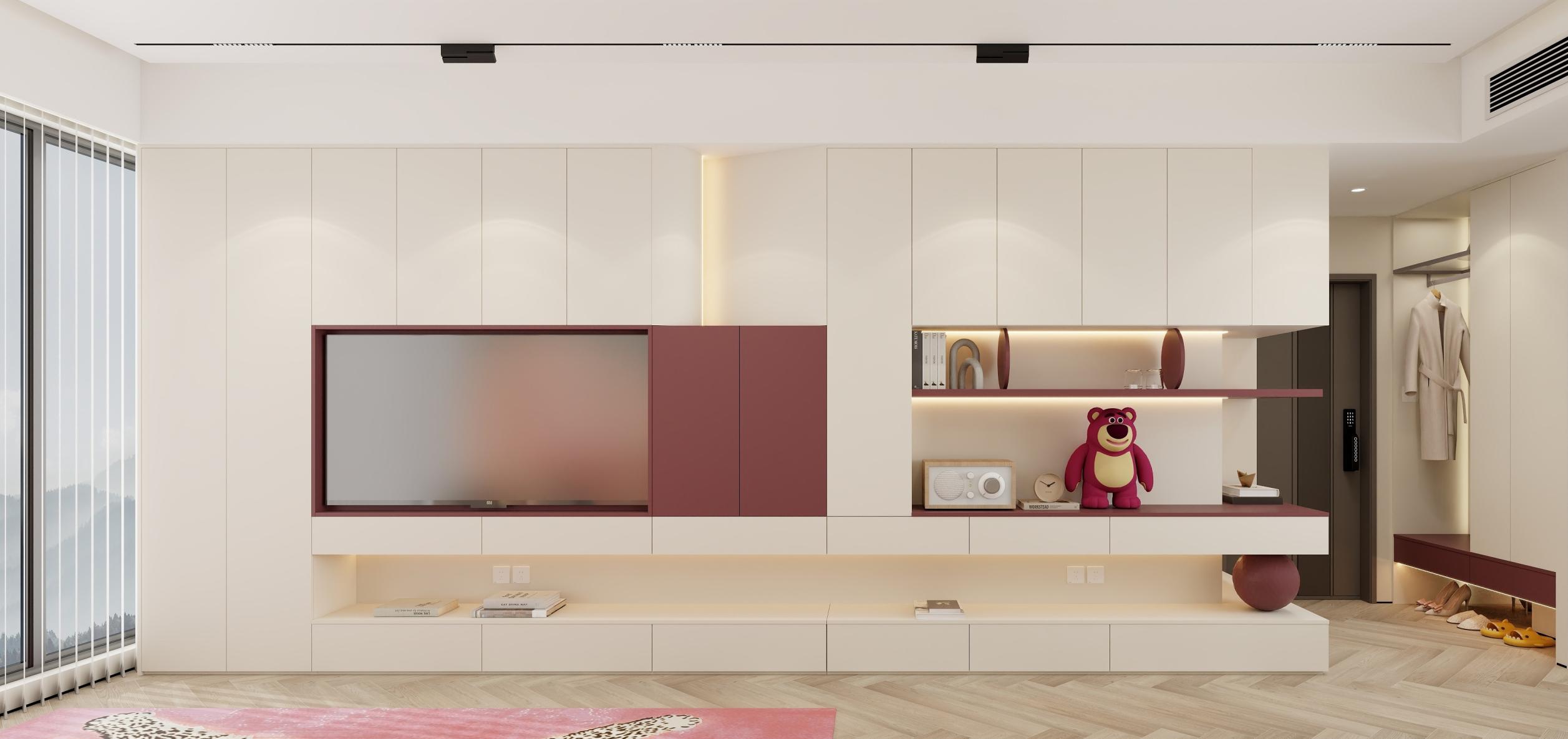 全屋設(shè)計(jì)采用紅+白的高級(jí)感配色,個(gè)人眼前一亮的感覺(jué),復(fù)刻摩登意境氛圍,充滿創(chuàng)意和童趣的家,是釋放無(wú)限想象和靈感的奇妙樂(lè)園,“草莓熊”為整個(gè)空間設(shè)計(jì)的靈感繆斯,用微醺梅子色續(xù)寫迪士尼浪漫,是一場(chǎng)色彩與潮流的碰撞。
