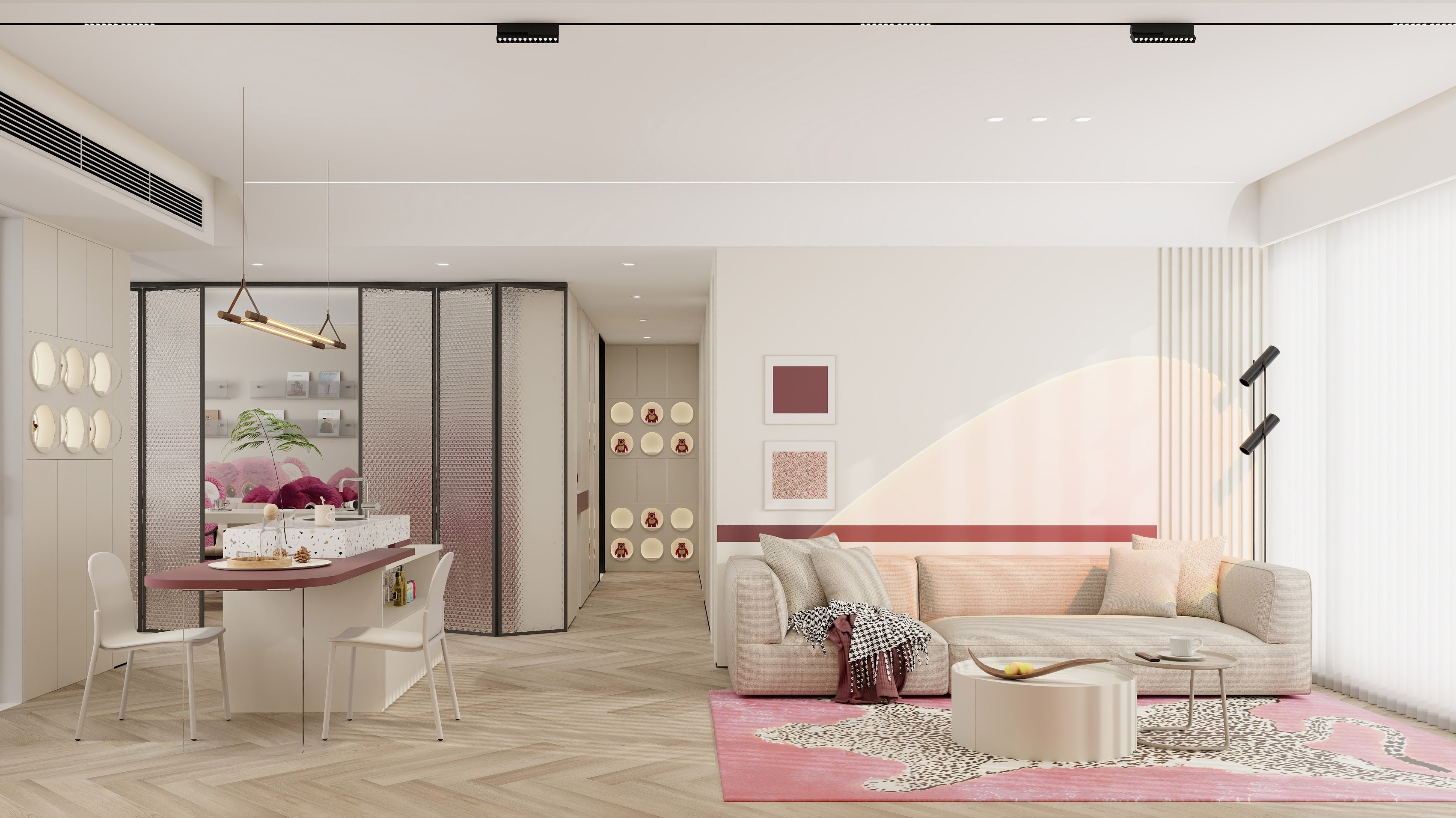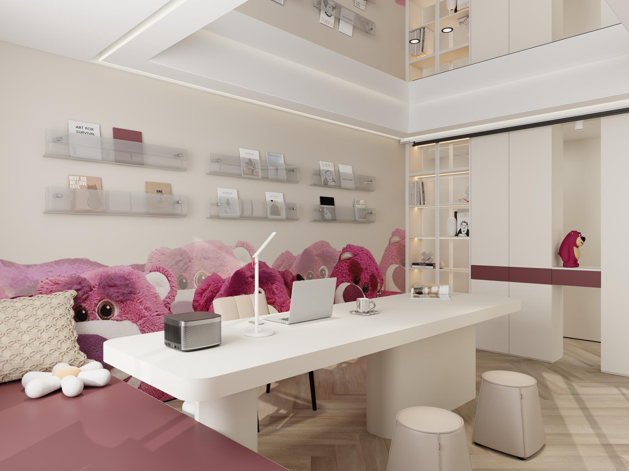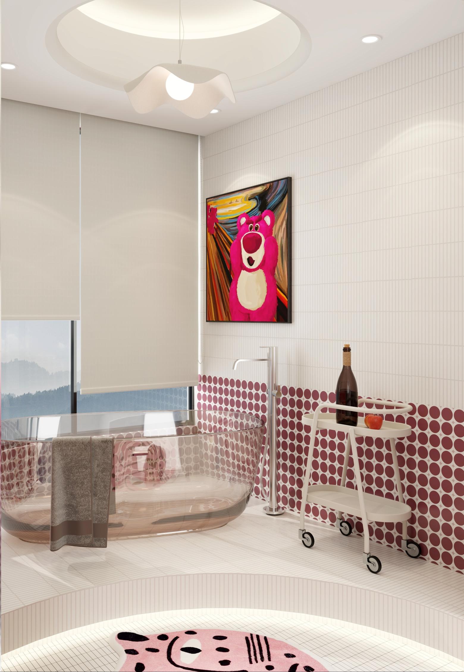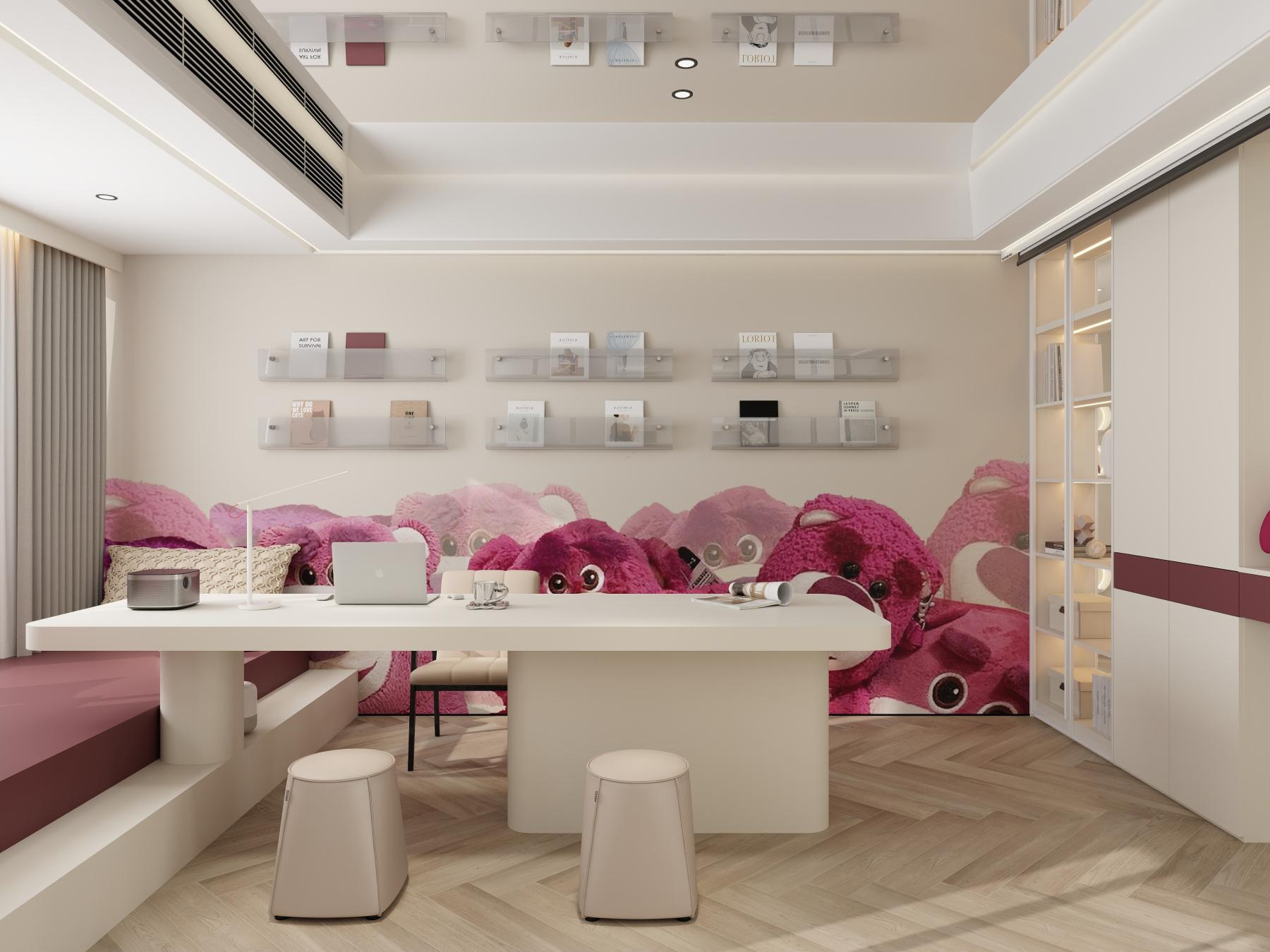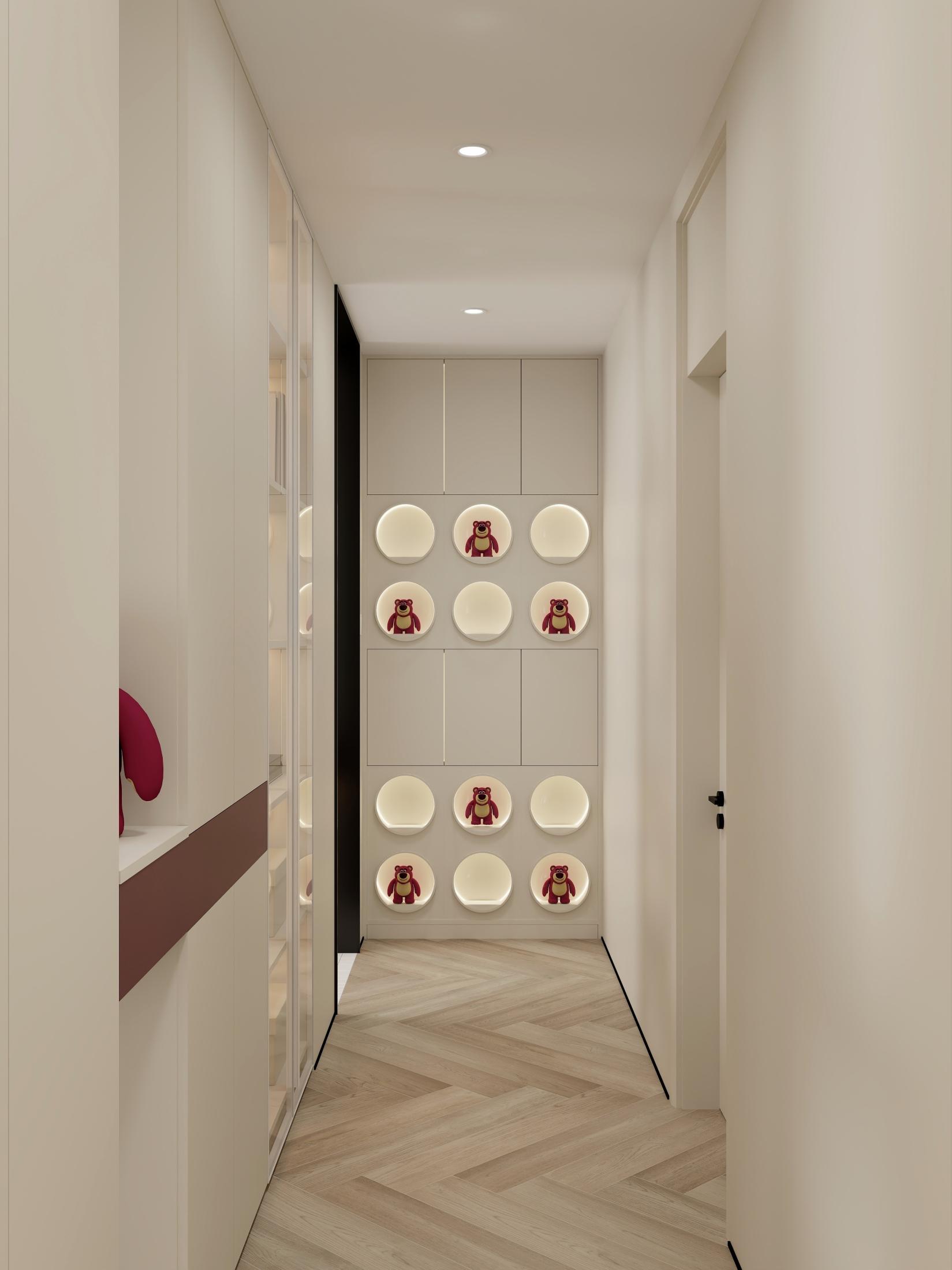 全屋設(shè)計(jì)采用紅+白的高級(jí)感配色,個(gè)人眼前一亮的感覺(jué),復(fù)刻摩登意境氛圍,充滿創(chuàng)意和童趣的家,是釋放無(wú)限想象和靈感的奇妙樂(lè)園,“草莓熊”為整個(gè)空間設(shè)計(jì)的靈感繆斯,用微醺梅子色續(xù)寫迪士尼浪漫,是一場(chǎng)色彩與潮流的碰撞。