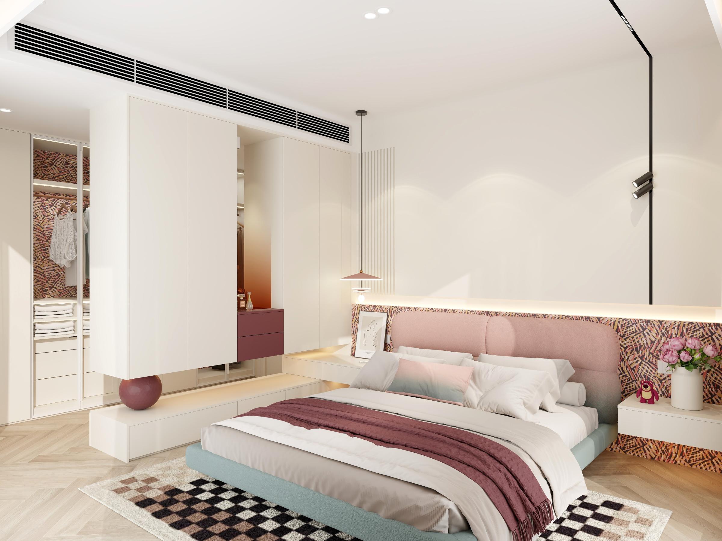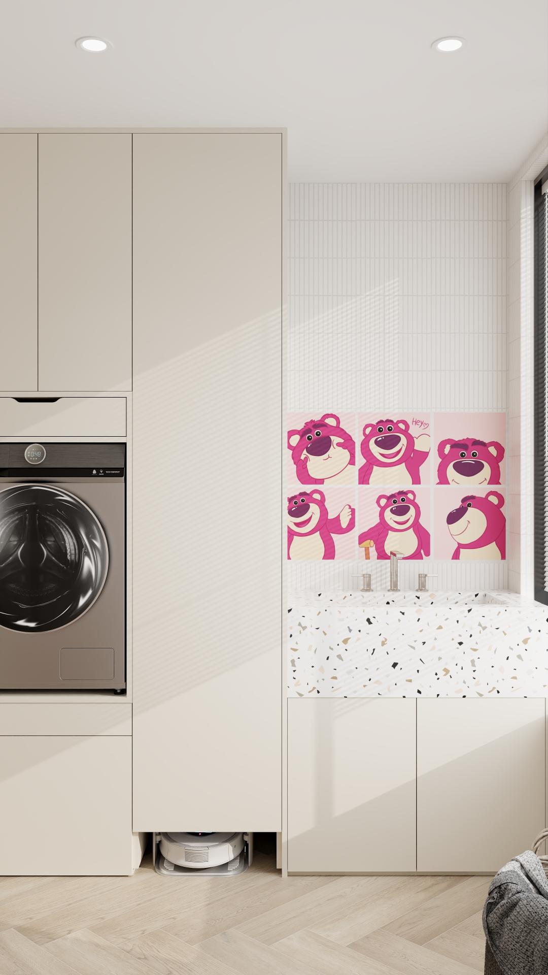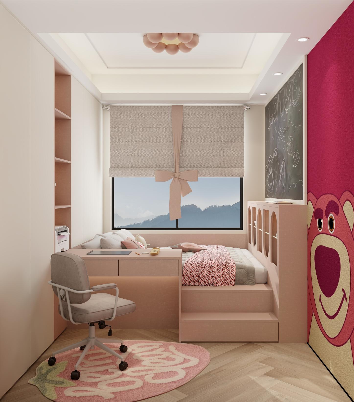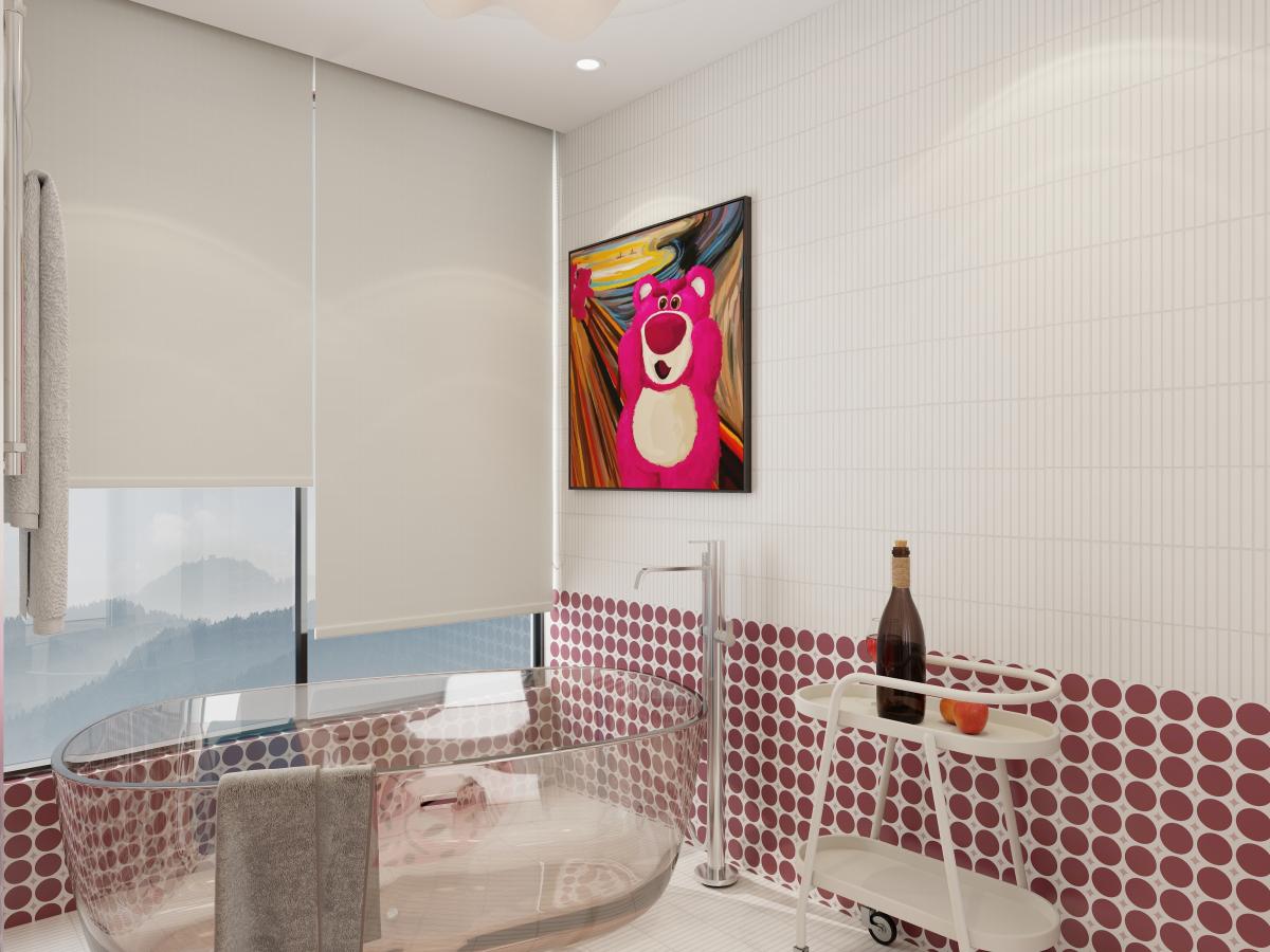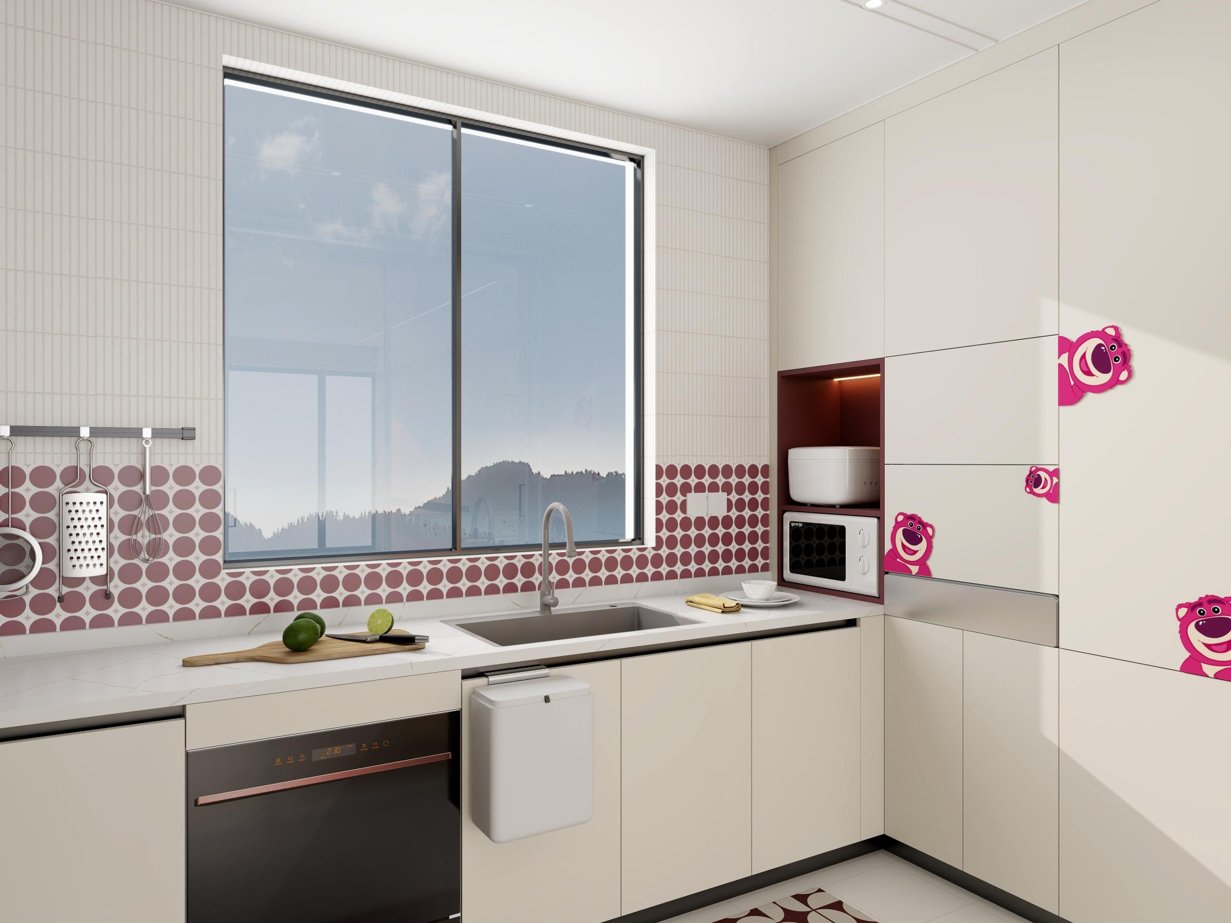 全屋設(shè)計(jì)采用紅+白的高級(jí)感配色,個(gè)人眼前一亮的感覺(jué),復(fù)刻摩登意境氛圍,充滿創(chuàng)意和童趣的家,是釋放無(wú)限想象和靈感的奇妙樂(lè)園,“草莓熊”為整個(gè)空間設(shè)計(jì)的靈感繆斯,用微醺梅子色續(xù)寫迪士尼浪漫,是一場(chǎng)色彩與潮流的碰撞。