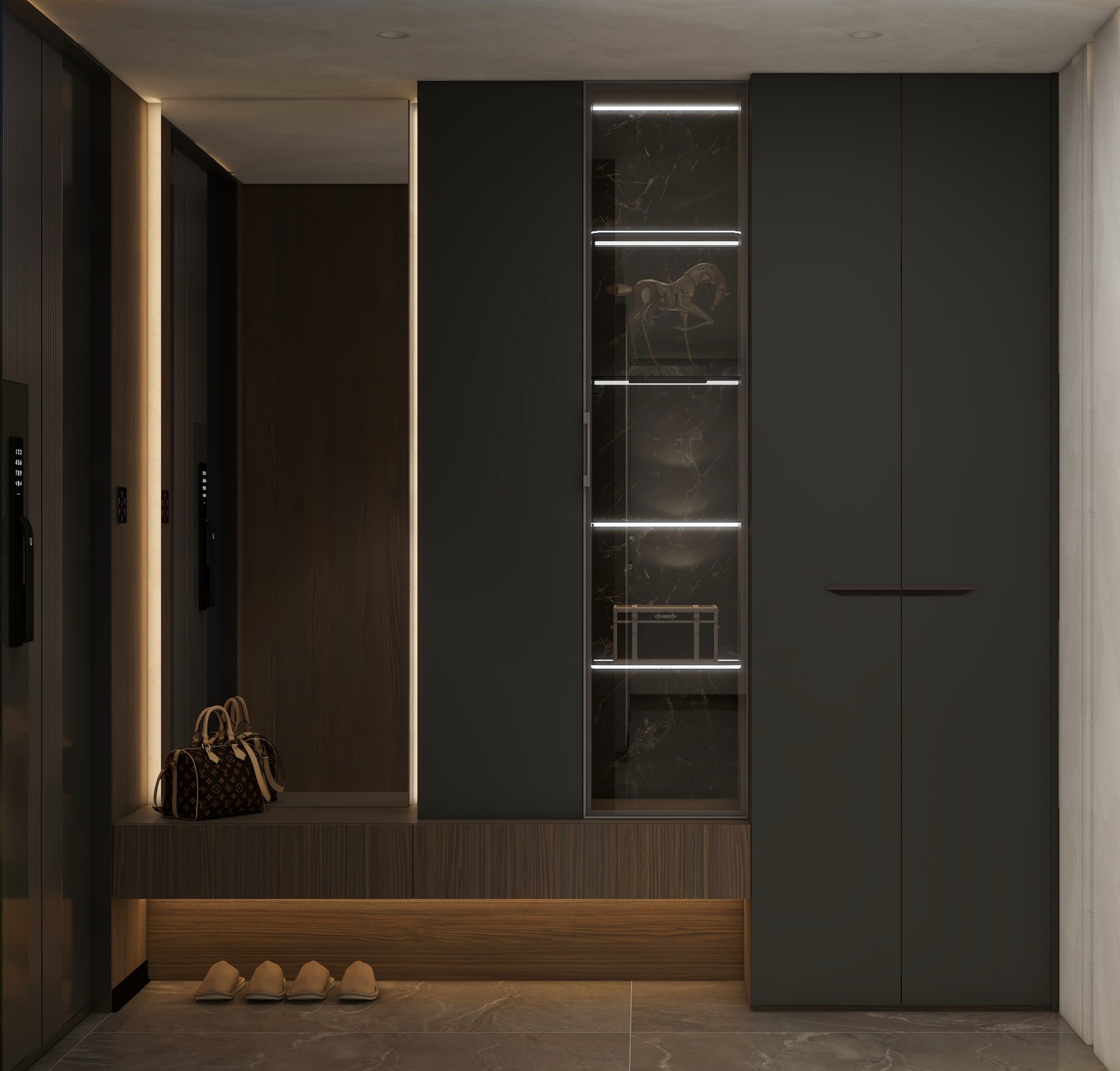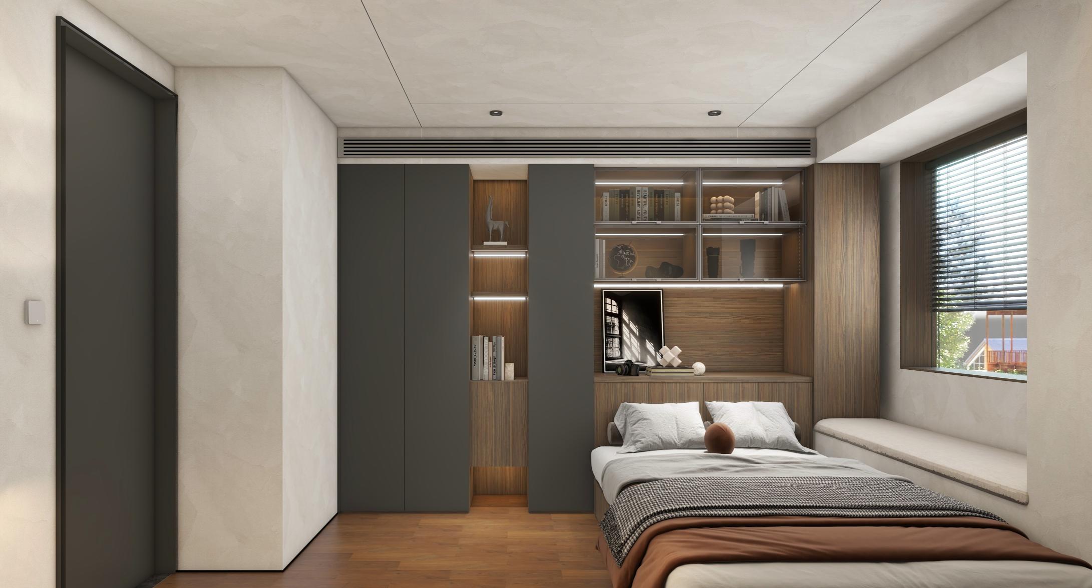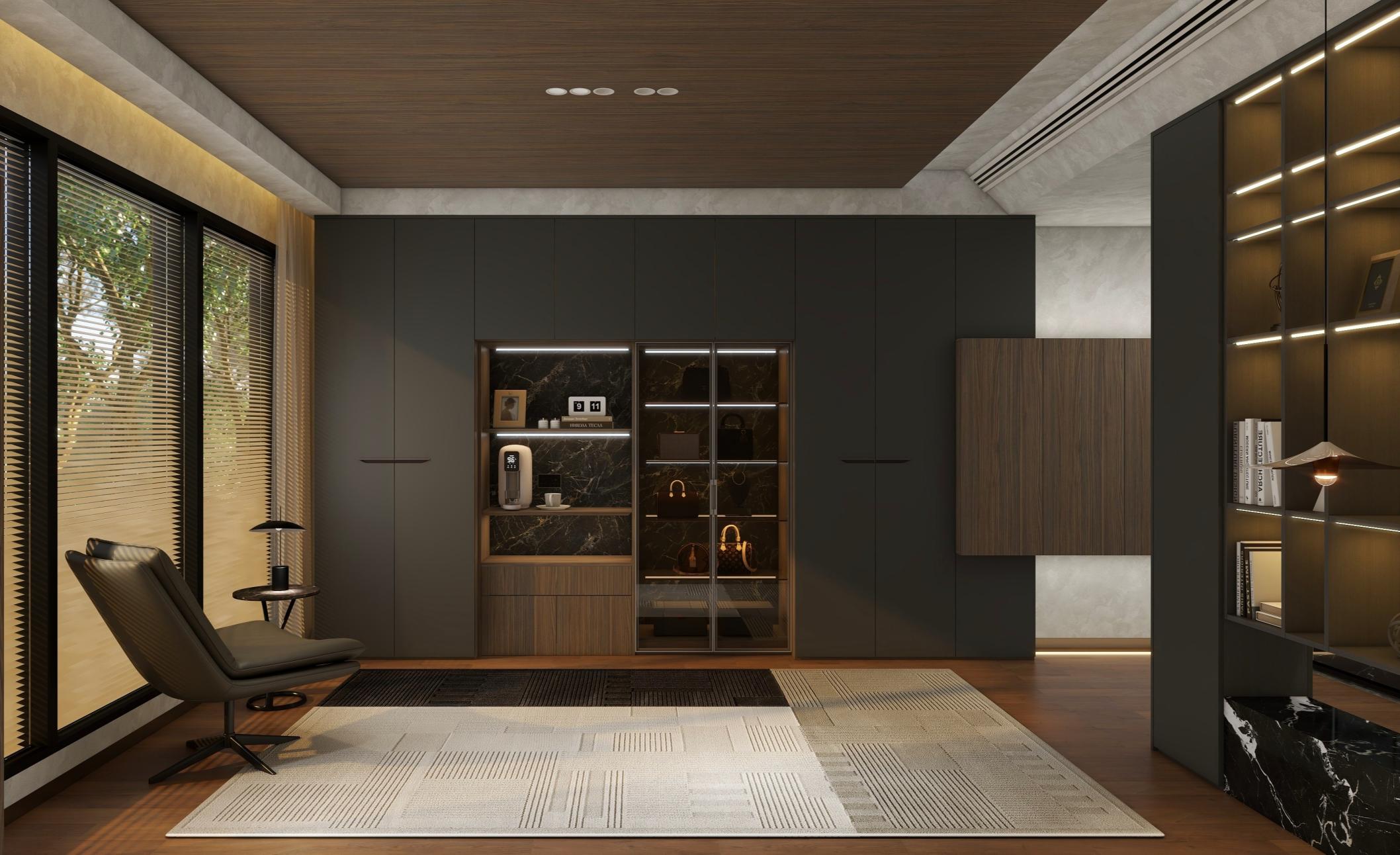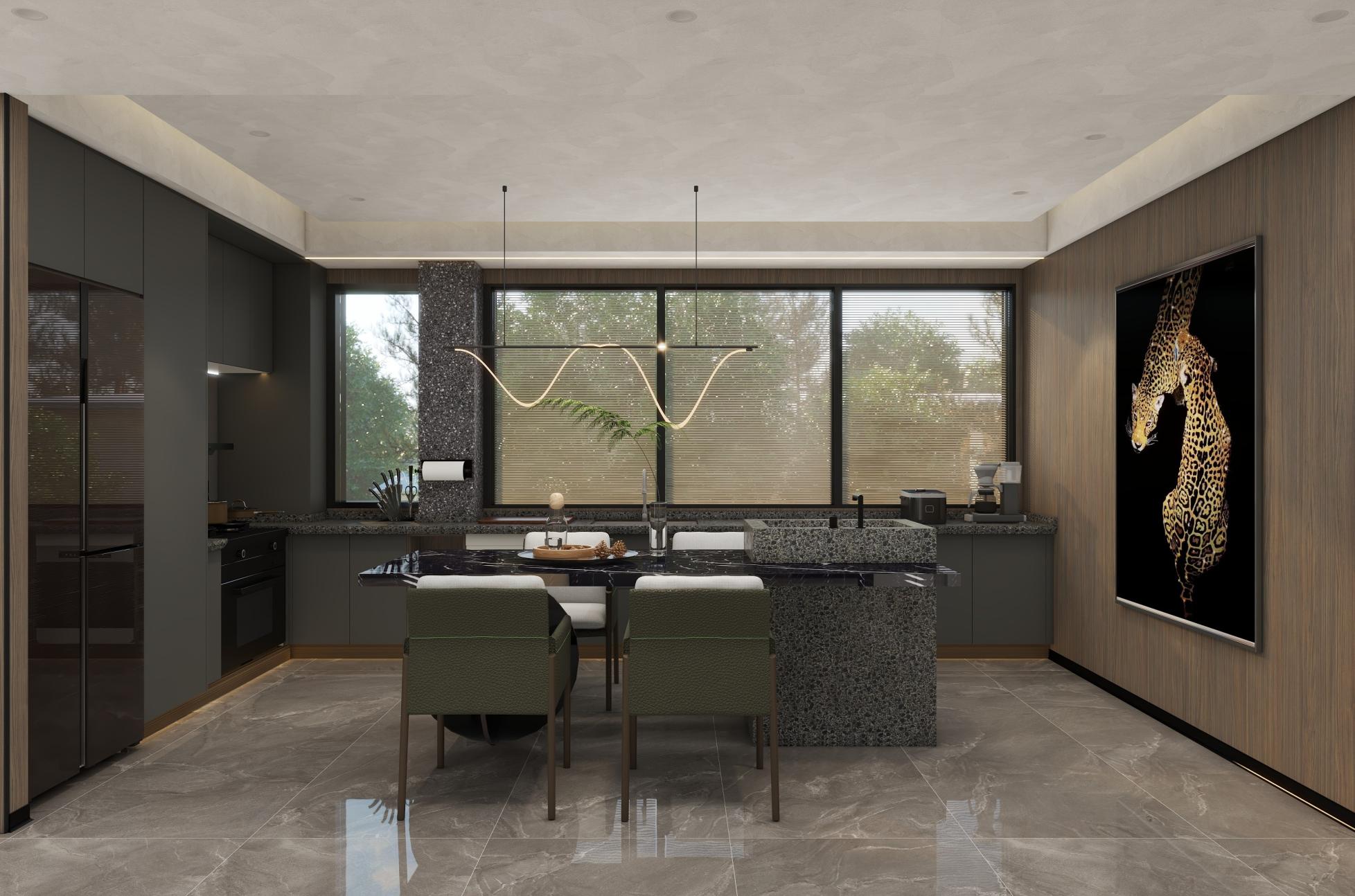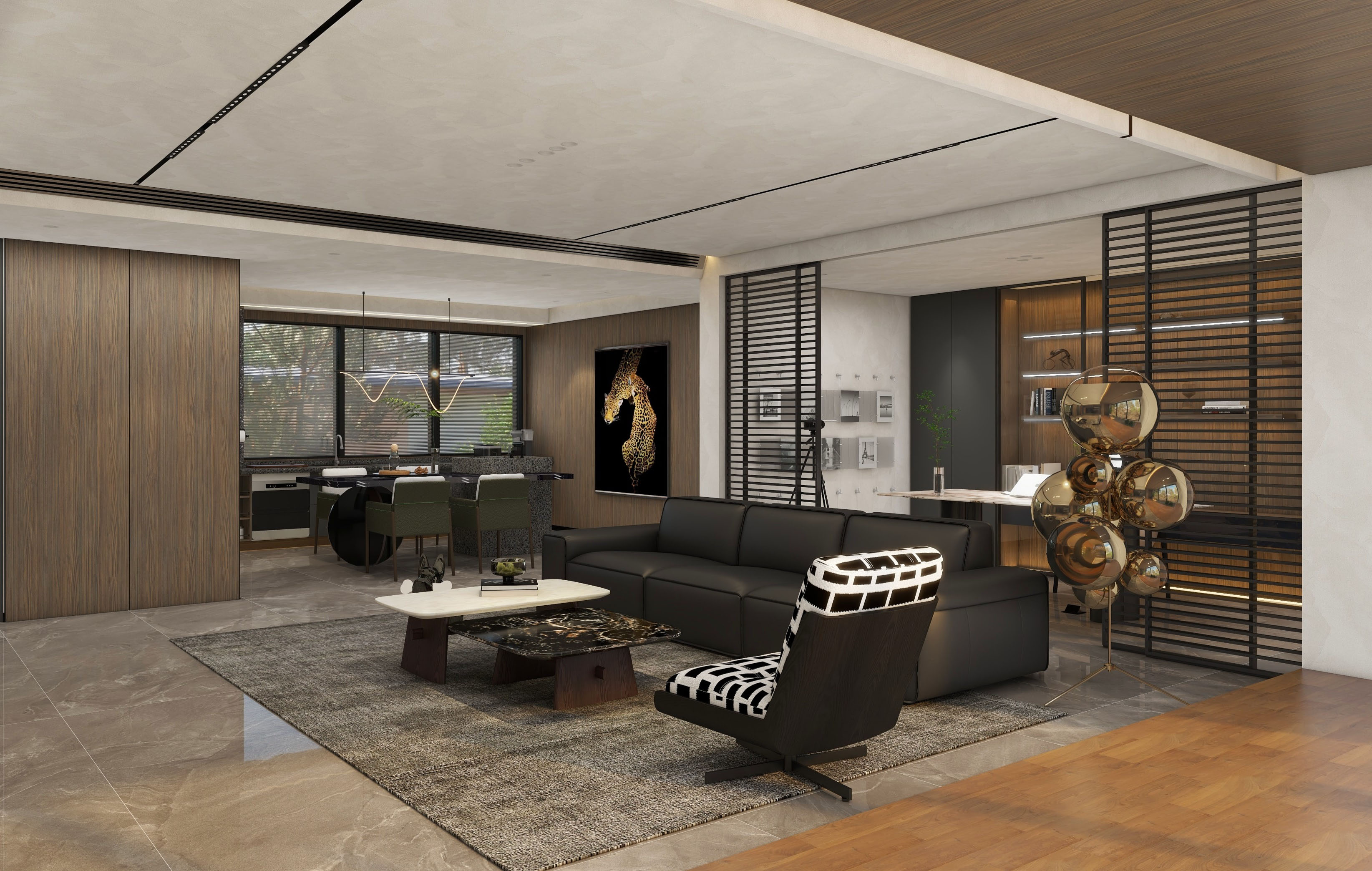 重新梳理空間功能與尺寸,開放式餐廚客廳一體化設(shè)計(jì)空間寬敞通透最大限度引入自然光,灰色基調(diào)搭配深色木飾面,打造一個舒適的高品質(zhì)空間 “少即是多”,不是簡單地去除繁雜的元素,而是適當(dāng)給家居設(shè)計(jì)做減法,既有去繁從簡的從容感,滿足日常生活所需的收納,強(qiáng)化功能與使用,同時也能夠體驗(yàn)到居家的舒適與品質(zhì)。