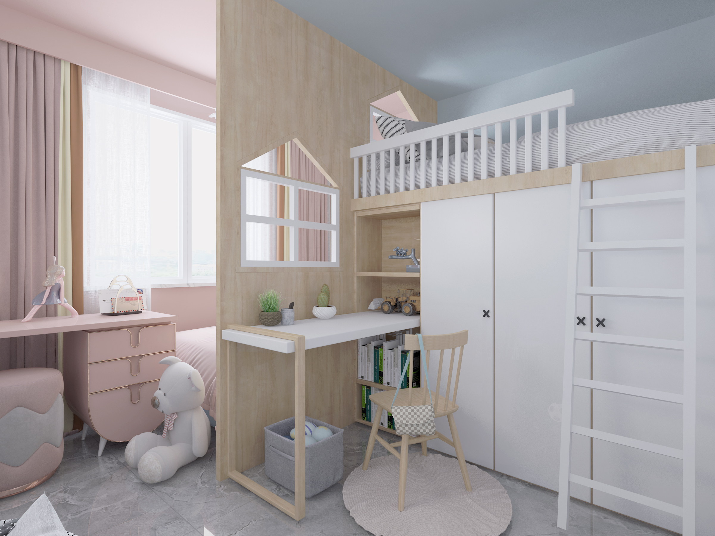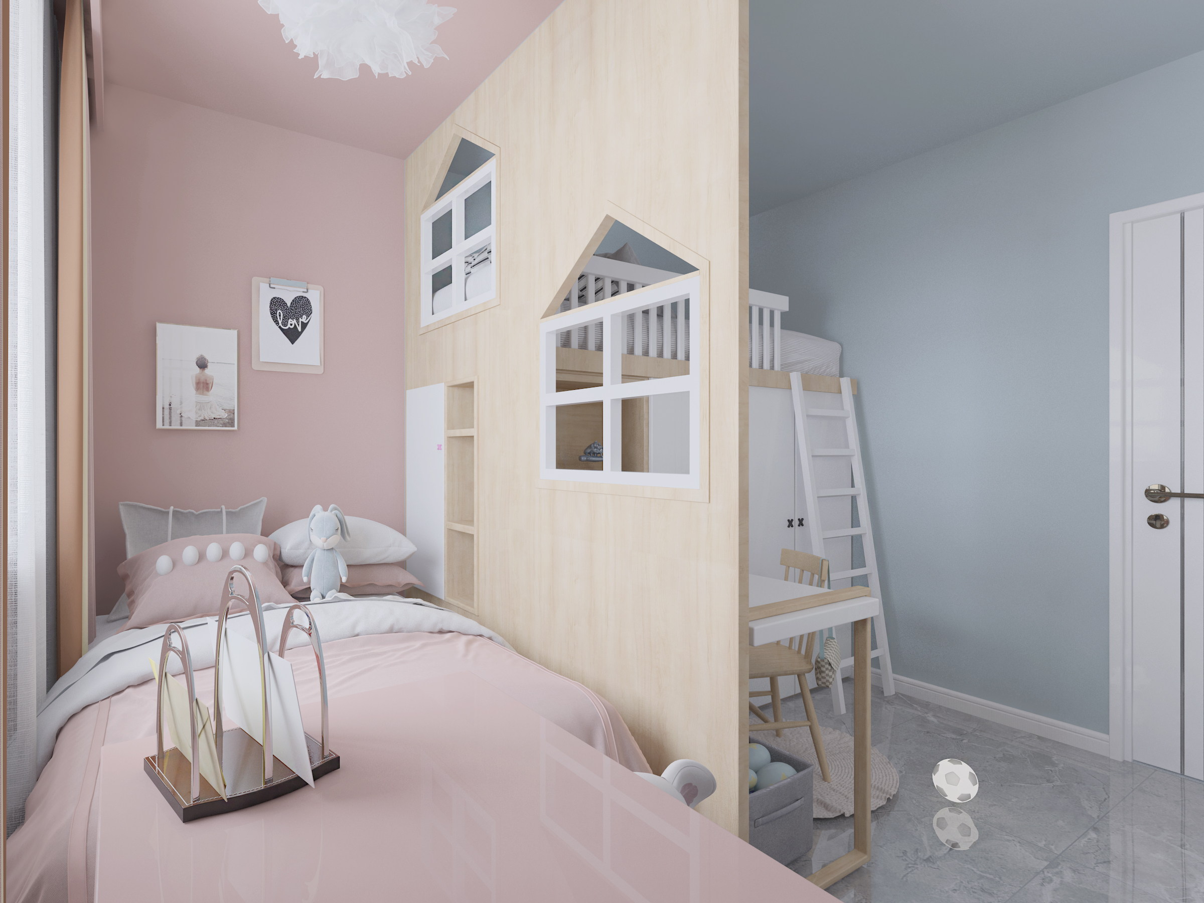 ? 一家四口人住,需要三室,但是沒有那么多房間,老房子都是承重墻,也沒辦法拆,只能在一個房間里做出來兩個房間,總體的顏色搭配,男女孩的區(qū)分還是比較滿意的,客戶看到效果也是眼前一亮,既滿足了使用功能的需求,也達到了美的效果。