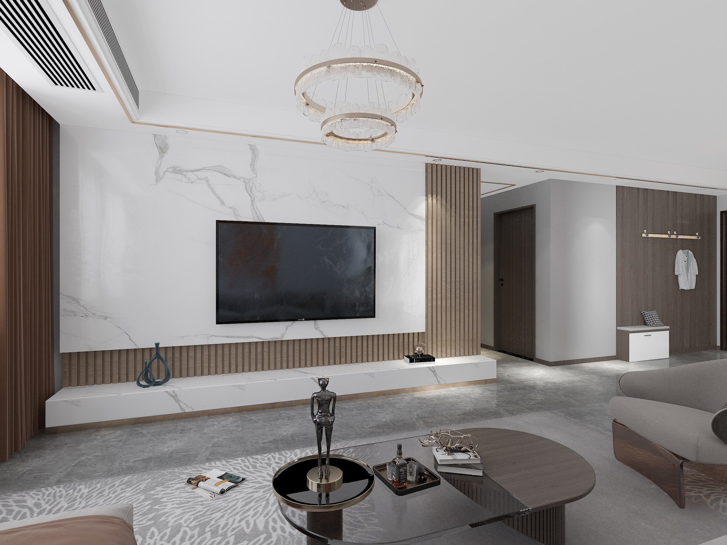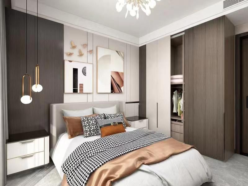 ? 客戶比較年輕,喜歡亮堂、大氣的感覺,在第一次溝通的時候就喜歡造型,喜歡金屬條,喜歡巖板、墻板,一定要裝的比較豪華。金屬線條和木紋墻板的搭配,確實比較舒服,營造的氛圍也比較溫馨,而且很大氣。
