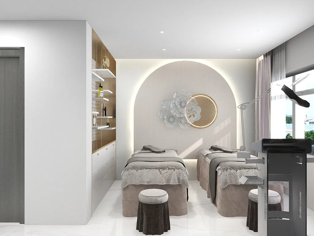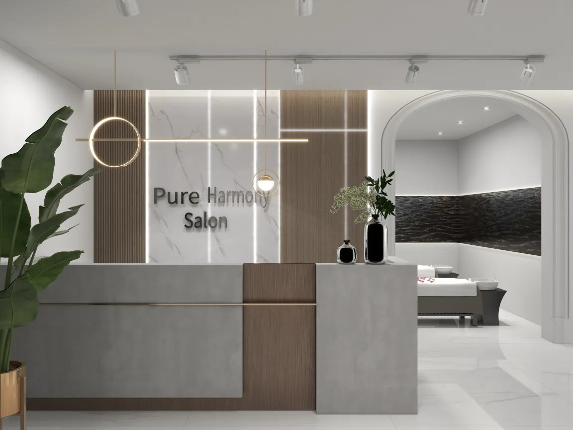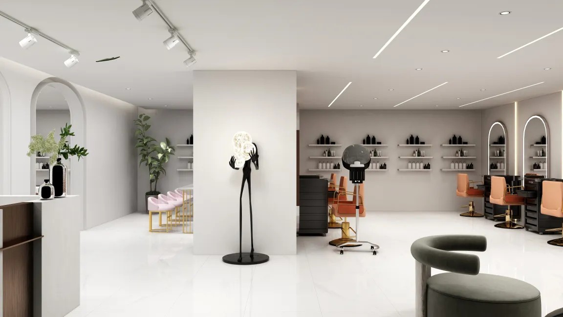 ? 一個理發(fā)店的裝飾效果圖,現(xiàn)代簡約風(fēng)格。