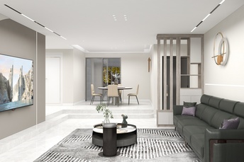 這個戶型有個錯層,兩步臺階的高度,這個臺階成了屋里的一個亮點,臺階和電視墻的電視柜完美銜接,從入戶看過去讓人眼前一亮,客餐廳的無主燈設(shè)計是另一個亮點,完美銜接了,頂面和梁面的誤差,顏色上以淺色為主,使得房間更加的溫馨,整體的感覺很舒服。