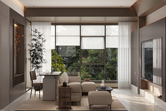 以江南園林為設(shè)計靈感, 將傳統(tǒng)花窗、洞門、巧妙融入設(shè)計手法, 好似一幅水墨畫卷將淡雅氛圍融入每一個角落。